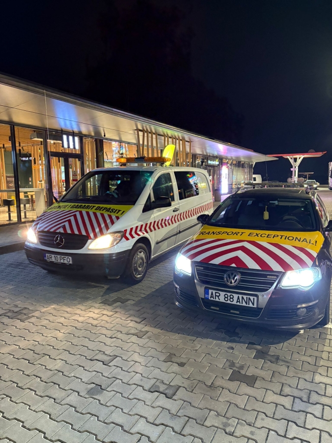 Firma deține mașini de însoțire (escorte transporturi speciale civile) autorizate de Ministerul Transporturilor conform reglementărilor legale în vigoare și asigură întreținerea riguroasă a acestora.