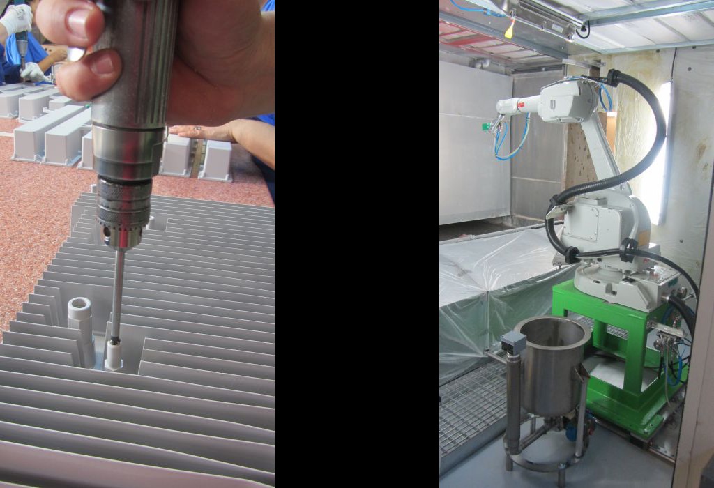 Materialele vopsite sunt plastice și metalice, iar vopsirea se face pe o linie de vopsire cu pulbere (roboți cu 6 pistoale + 2 pistoale manuale) și pe 3 linii de vopsire lichidă robotizată (100% automatizată sau semi-manuală cu 10 roboți de vopsire și 3 pistoale manuale).